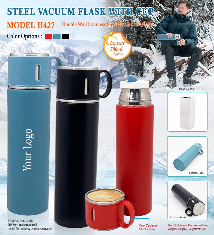 Steel Vacuum Flask with Cup – Model H427